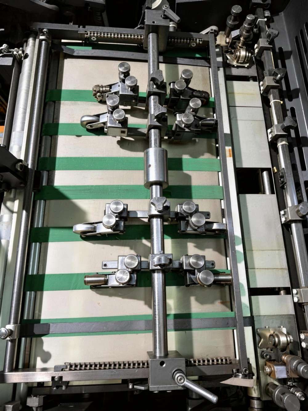 11) ڈبل اسپرنگ گریپرز تیز رفتار آپریشن میں کاغذ کی نقل و حمل کے دوران کاغذ کے پھسلنے سے روکتے ہیں اور طویل پرنٹنگ کے دوران مسلسل گرفت کے دباؤ کو برقرار رکھتے ہیں۔